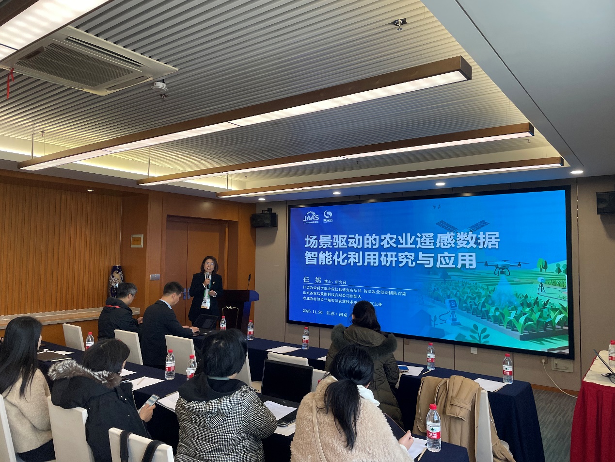 会上,任妮以《场景驱动的农业遥感数据智能化利用研究与应用》为题作学术报告,分析了数智化技术驱动下农业遥感学科的发展趋势与热点前沿,并重点围绕开放环境下粮经作物和水产养殖两个典型应用场景,从产业需求和技术痛点的视角,分享了团队开展多源异构遥感影像预处理、作物精准识别与分类、长势智能监测、病虫害预警、产量预测、水产养殖环境监测等技术攻关和应用推广的探索实践。