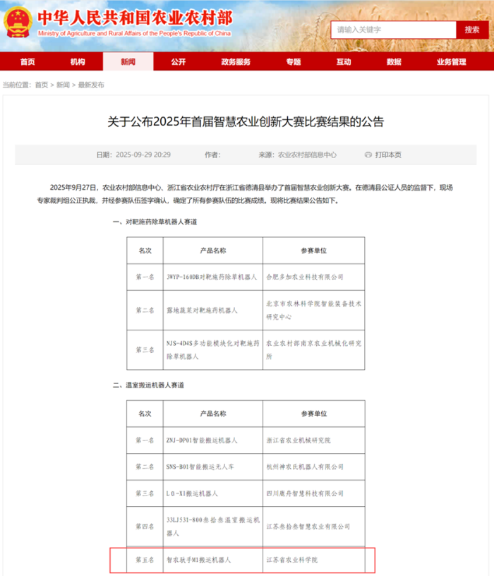 9月25-27日,2025年首届智慧农业创新大赛在浙江德清成功举办。农业农村部副部长江文胜等相关部门领导专家出席会议。我院信息所所长、智慧农业创新团队首席任妮研究员带队参加比赛。